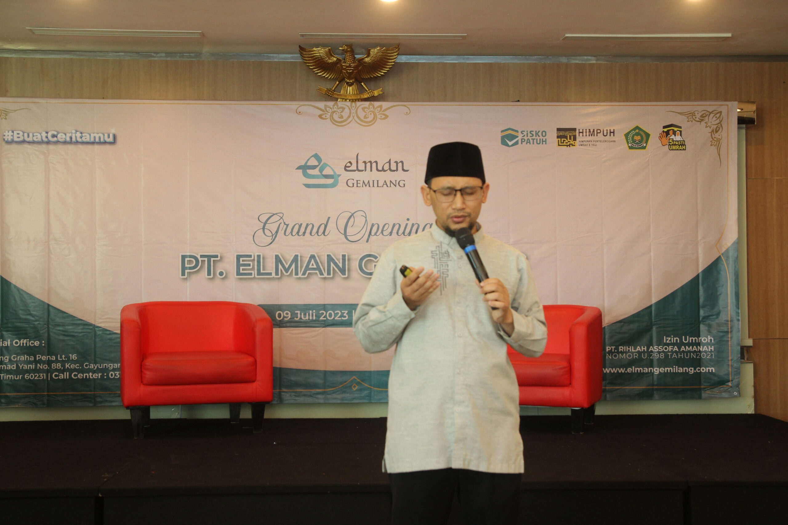 “Kami bersyukur bisa hadir di tengah masyarakat untuk membantu memdahkan mereka dalam proses ibadah Umroh”. Ujarnya kepada audience.